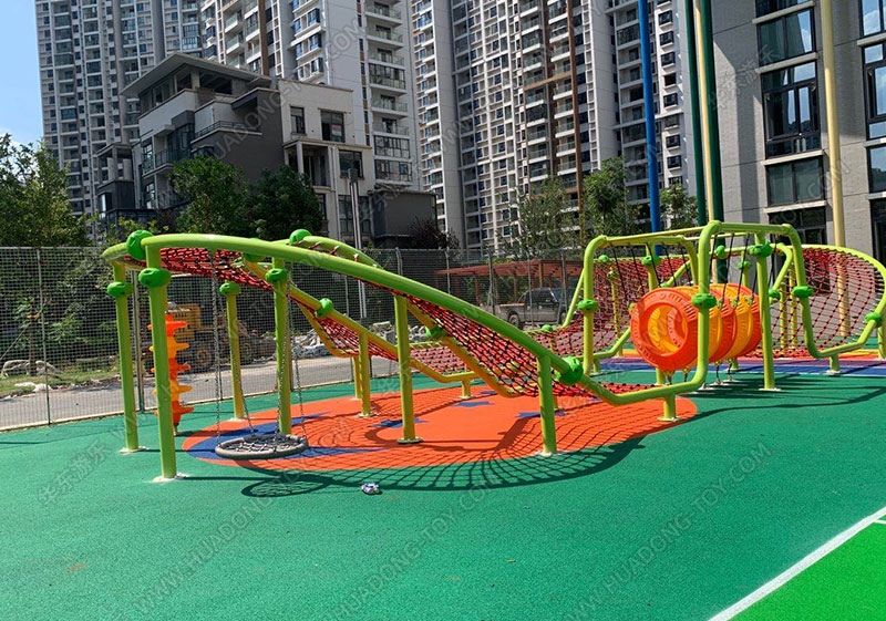 • 湖北省黄石市一品园幼儿园是一家综合性幼儿园,他们在选用游乐设备的时候采用的是加强小朋友的意志力、敢于挑战的勇气的万能健身设备和爬网,整套设备的完美设计与组合使得整个项目充满了活力。