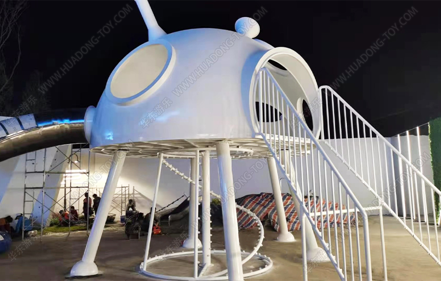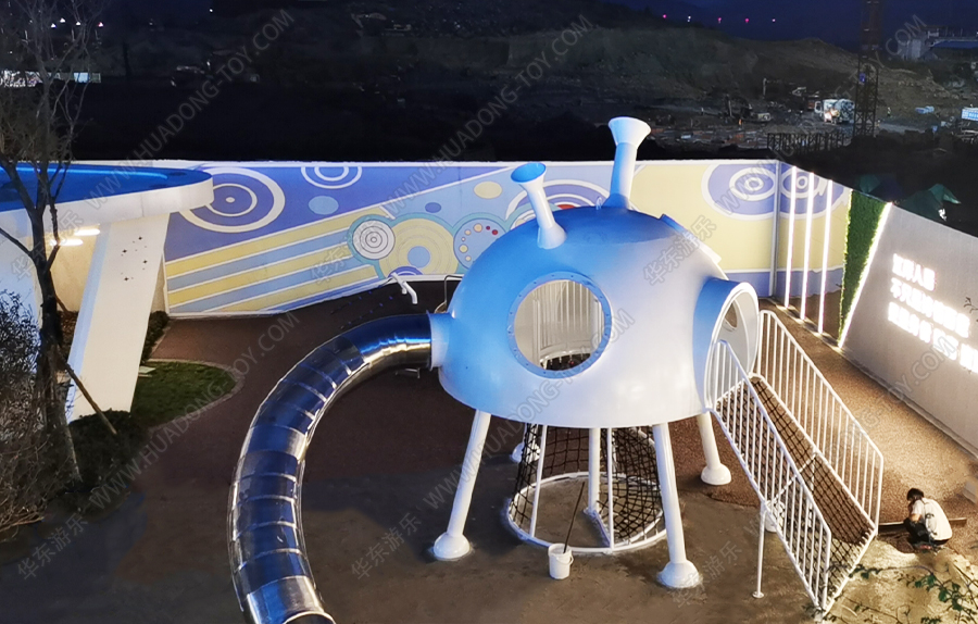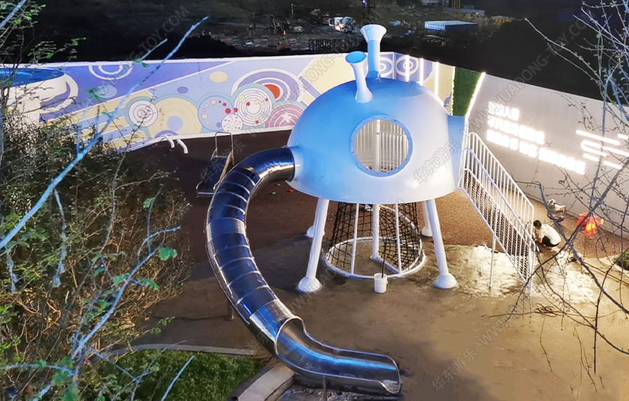 隆回县碧桂园天玺湾非标定制案例采用的是一个由leyu.乐鱼游乐自主研发和设计的一款造型独特,外观新颖的具有不锈钢滑桶、爬网、钻洞等功能的游乐设备,并在该游乐场设置了摇摇乐、秋千等游乐设备,为生活在该区域的小朋友提供了一个休闲,娱乐 ,健身的场所。