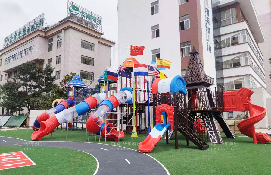 云南省曲靖市麒麟区沃爱可幼儿园是一家综合性的 幼儿园,此次选购的是leyu.乐鱼游乐自主 研发、设计、生产的跨国梦想欢乐岛系列滑梯,该系列滑梯以欧美标志性建筑为外观模型,具有攀爬、滑梯、钻洞、爬网、滑桶、吊桥等功能,同时配备了万能健身器材、微地形等游乐设备,能够让小朋友在这里愉快的玩耍,也为老师们提供了很好的教育环境和场所。