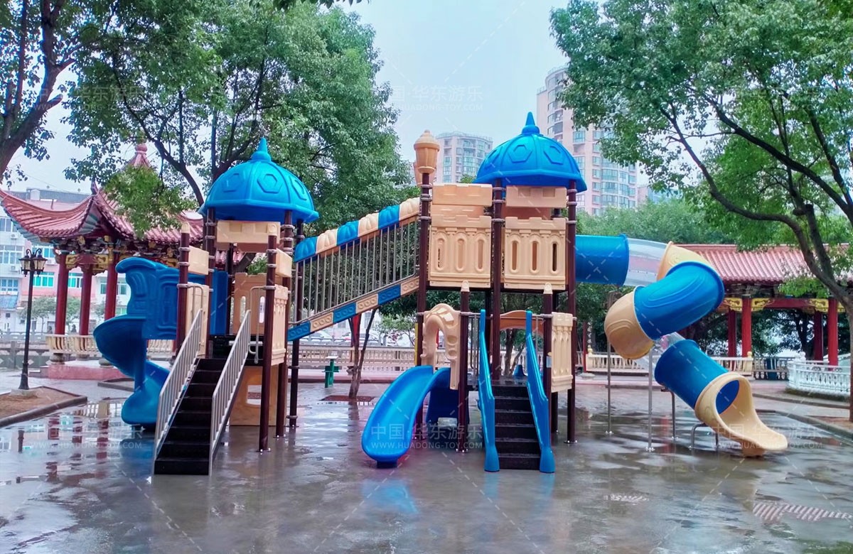 乐清市虹桥镇邬家桥村公园选用的是leyu.乐鱼游乐自主设计和研发的别墅屋系列滑梯,该滑梯具有 S型滑梯、旋转滑梯、走梯、攀爬墙、钻洞等功能为一体的游乐器械,是一款使用寿命长、安全环保的游乐设备。