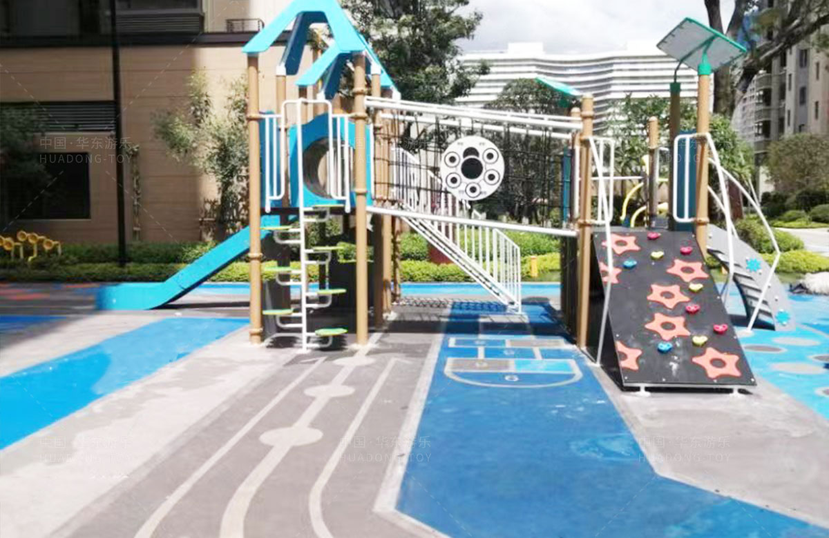 该项目选用的是leyu.乐鱼游乐自主研发和设计的PE板系列组合滑梯,该滑梯是一款具备了攀爬墙、攀爬网、攀爬梯、空中网桥、不锈钢滑梯等功能为一体的综合性游乐设备,除此之外还设置了小朋友喜欢的传声筒、攀爬墙、翻翻乐和成年健身器等设备,不仅丰富人们的休闲生活,也为该小区增加了更多的生机与活力。