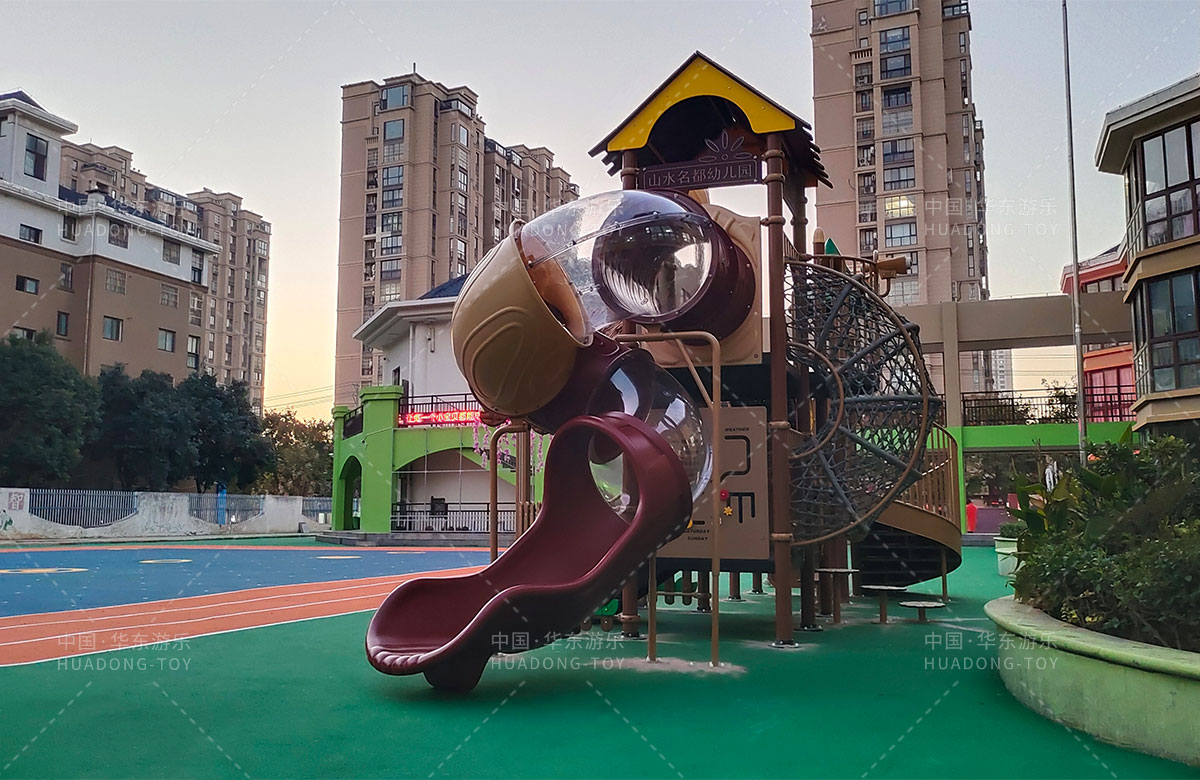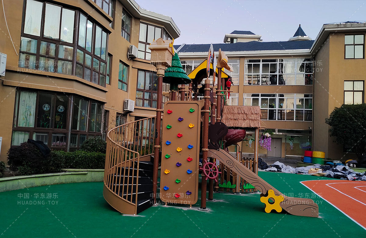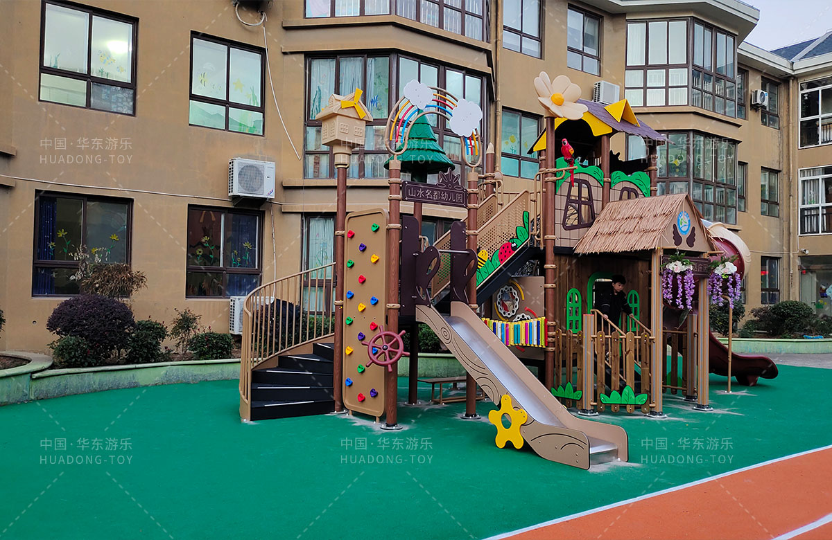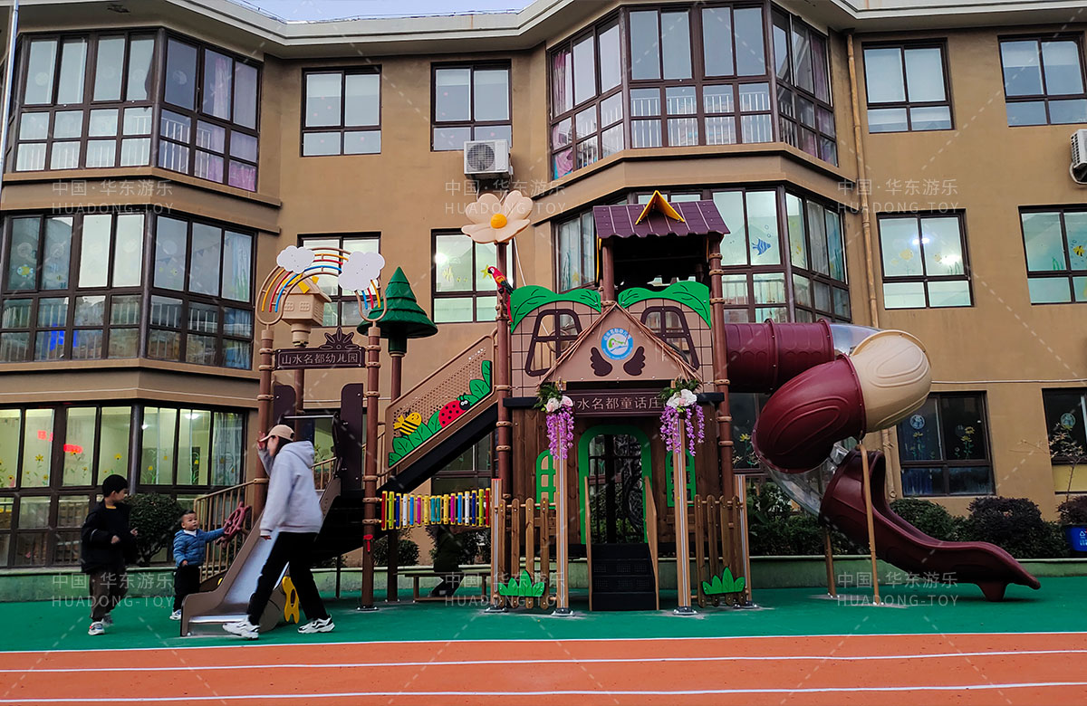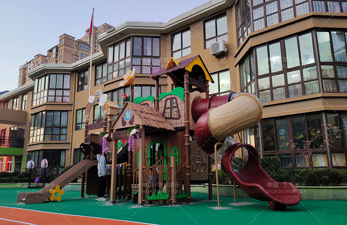 江苏省淮安市山水名都幼儿园是一家专业的学期教育培训机构,此次选用的是leyu.乐鱼游乐自主研发和设计的通话庄园系列组合滑梯,该设备具备了攀爬网、攀爬墙、打击乐器、旋转滑梯等功能,是一款功能齐全、主题鲜明、颜色艳丽、品质优越的综合性游乐设备,非常适合幼儿园。