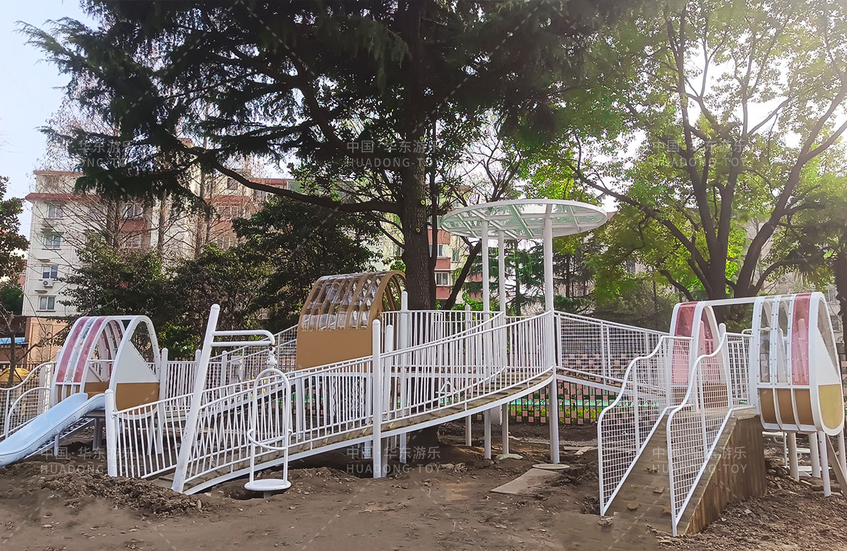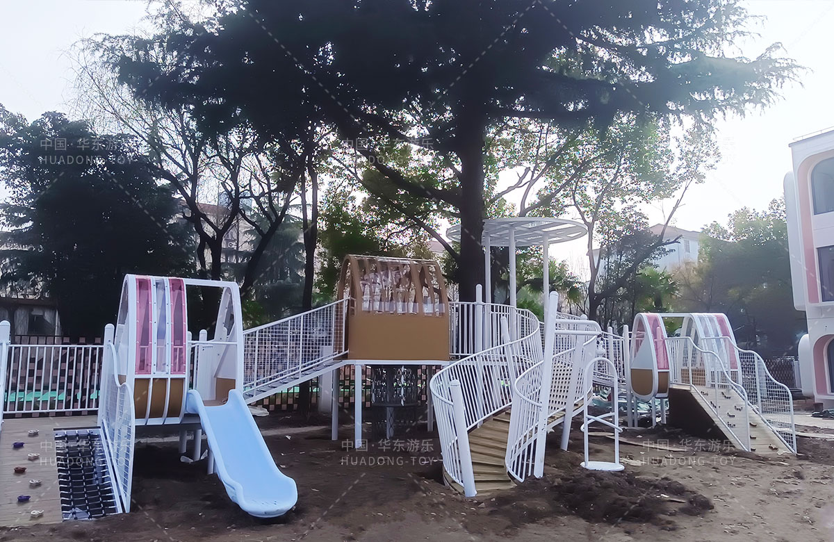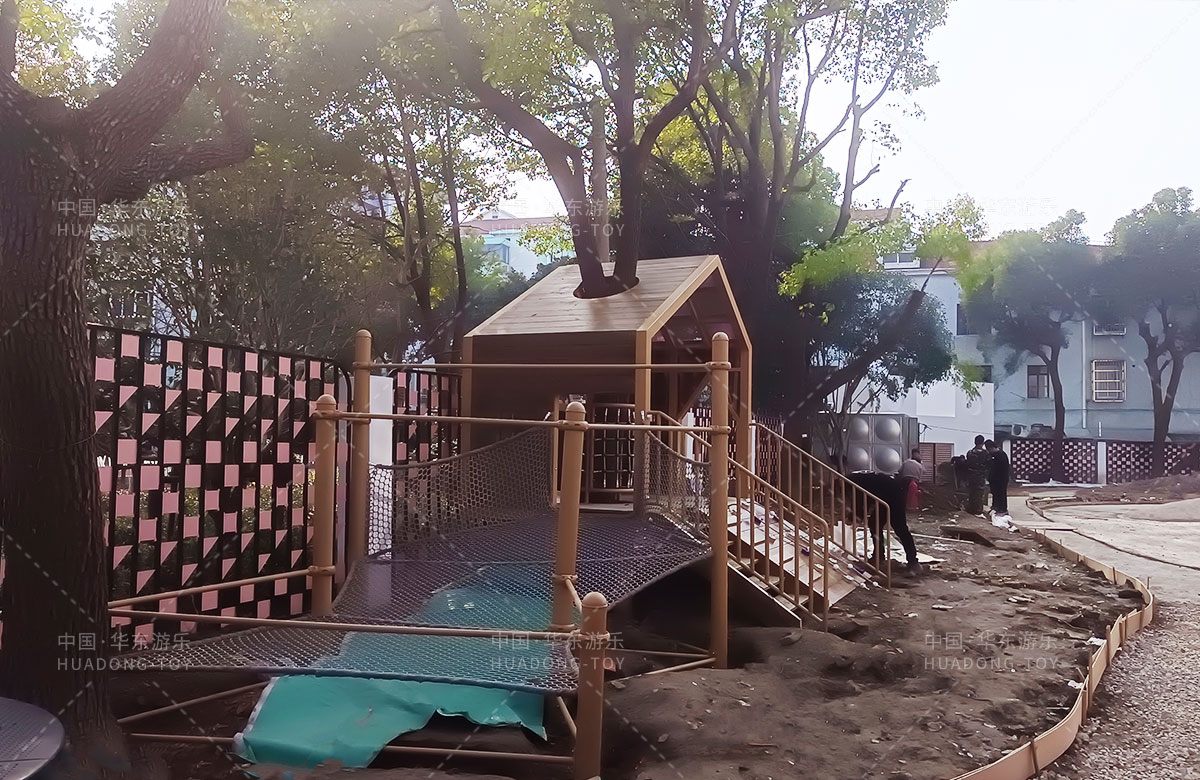 虹口区实验幼儿园简介创建于1993年9月。1994年定为一级一类幼儿园。儿园具有现代化的设施和美丽童趣的园舍。总占地面积4800多平方米。建设面积3000多㎡。绿化面积1800多㎡。 此次幼儿园游乐项目选择的是leyu.乐鱼游乐自主研发和设计的一款综合性木质系列非标定制产品,不仅功能齐全,主体性也非常的适合幼儿园的场景设置。
