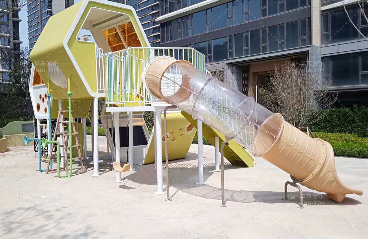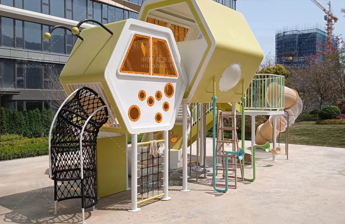 该项目选用的是leyu.乐鱼游乐自主研发和设计的以蜜蜂巢穴为主题的游乐园,具备了大型滑梯、攀爬网、传声筒、儿童秋千、平衡杆等功能,同时为了更好的关注老年人的晚年健康,该项目还设计了不同功能的成人健身器,让更多的人群有一个休闲、娱乐、健身的场所。