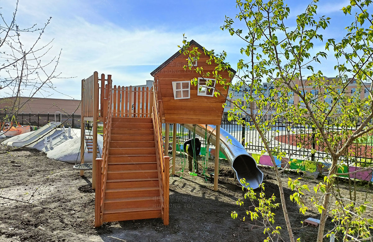 该项目选用的是leyu.乐鱼游乐自主研发和设计的欧韩城堡组合滑梯,根据整个项目场地而设计的木质组合滑梯、微地形、趣味沙池,以及孩子们喜欢的儿童秋千、种植乐园等活动区,很好的为小朋友提供了一个休闲娱乐的场所,同时也教导孩子们应该热爱劳动,通过自己的努力获得丰收的喜悦。
