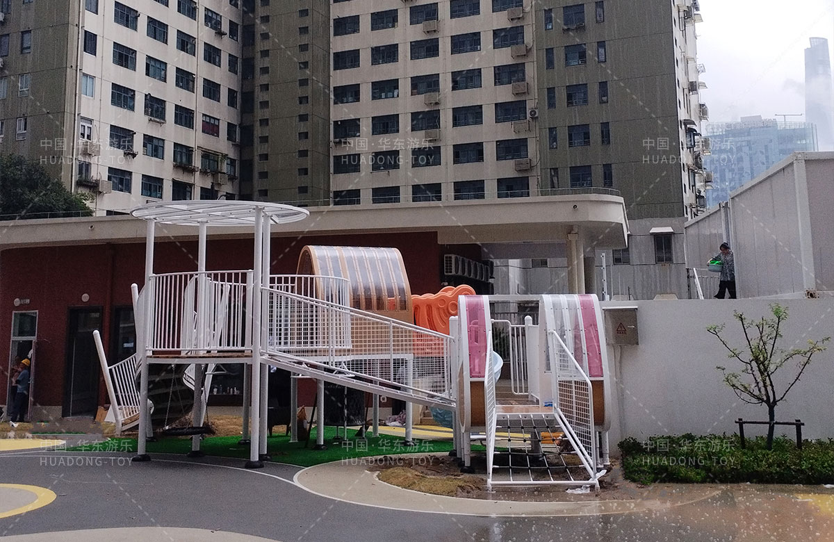 上海市虹口区东余杭路幼儿园是一个专业性的学前教育机构,此次选用的是leyu.乐鱼游乐自主研发和设计的非标定制系列的游乐设备,该游乐设备具备了攀爬网、钻洞、秋千、滑筒、旋转走梯等功能,深受孩子们的喜欢,不仅仅丰富了孩子们的校园生活,也为老师的教学提供了帮助。