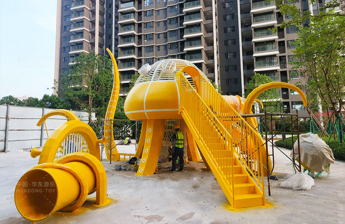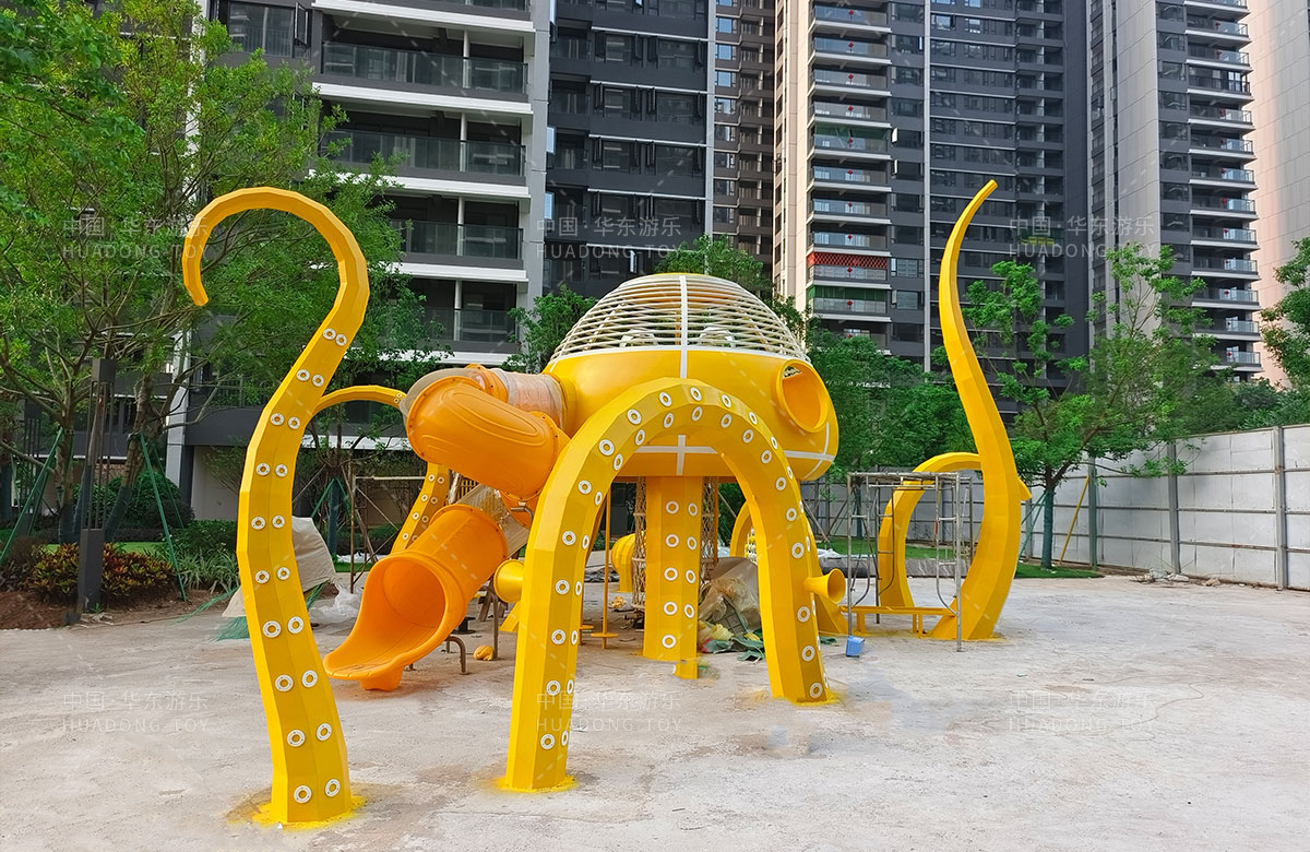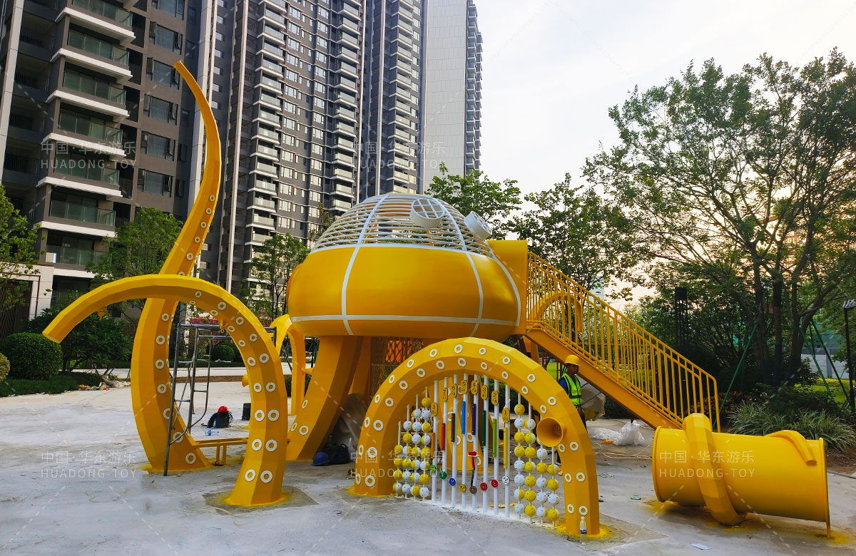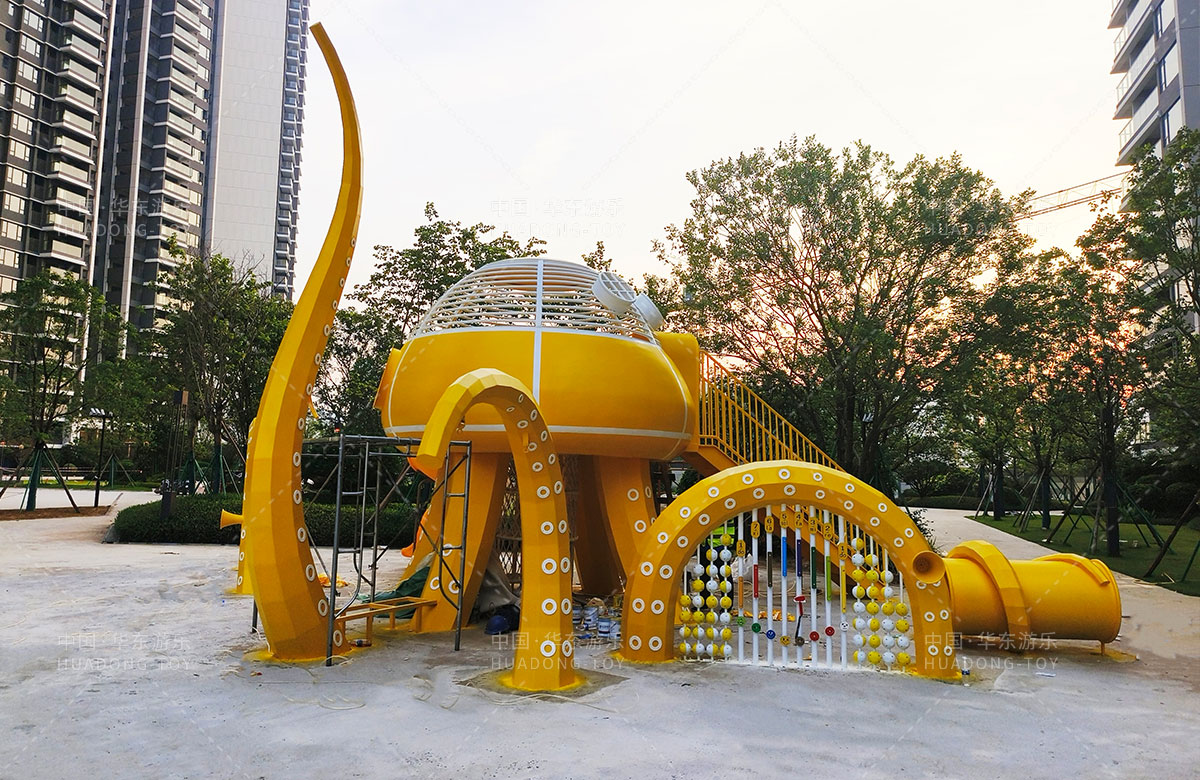中海地产汕头阅江府选用的是leyu.乐鱼游乐自主研发和设计的以章鱼为主题而设计的非标定制的章鱼主题综合游乐园,整个游乐园用一个大型的章鱼设备为主题,设计了集钻洞、攀爬网、滑梯、打击乐器等功能为一体的综合性游乐设备,为生活在当地的人群提供了一个休息娱乐的场所,也为小朋友们的健康成长提供了保障。