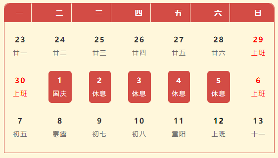放假期间,销售部正常接单,2024年10月6日正式上班,由此带来不便,敬请谅解。
