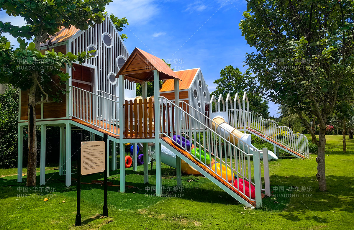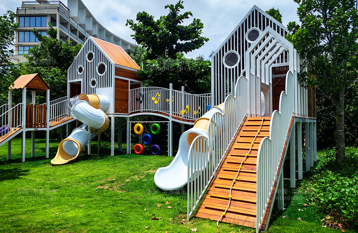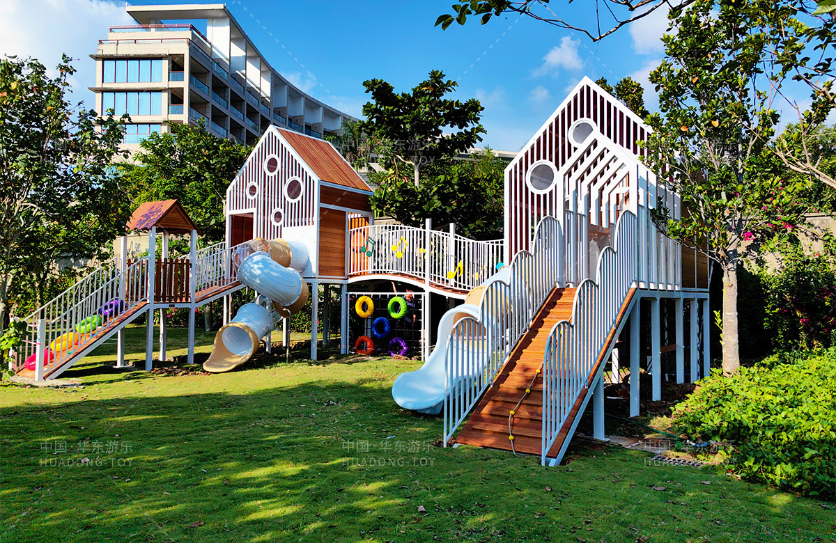 三亚天涯蓝海度假酒店是一个高端的休闲、旅游度假酒店,为了更好的为各位客户提供更加高端和更加完美的旅行服务,该酒店选用了leyu.乐鱼游乐自主研发和设计的非标定制的多功能组合游乐设备,该设备具备了攀爬绳、攀爬网、旋转滑梯、游戏小屋等系列功能。