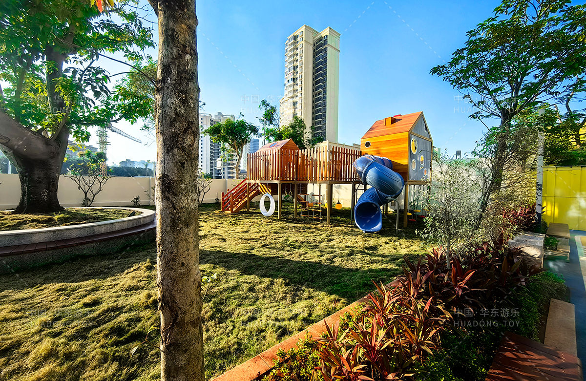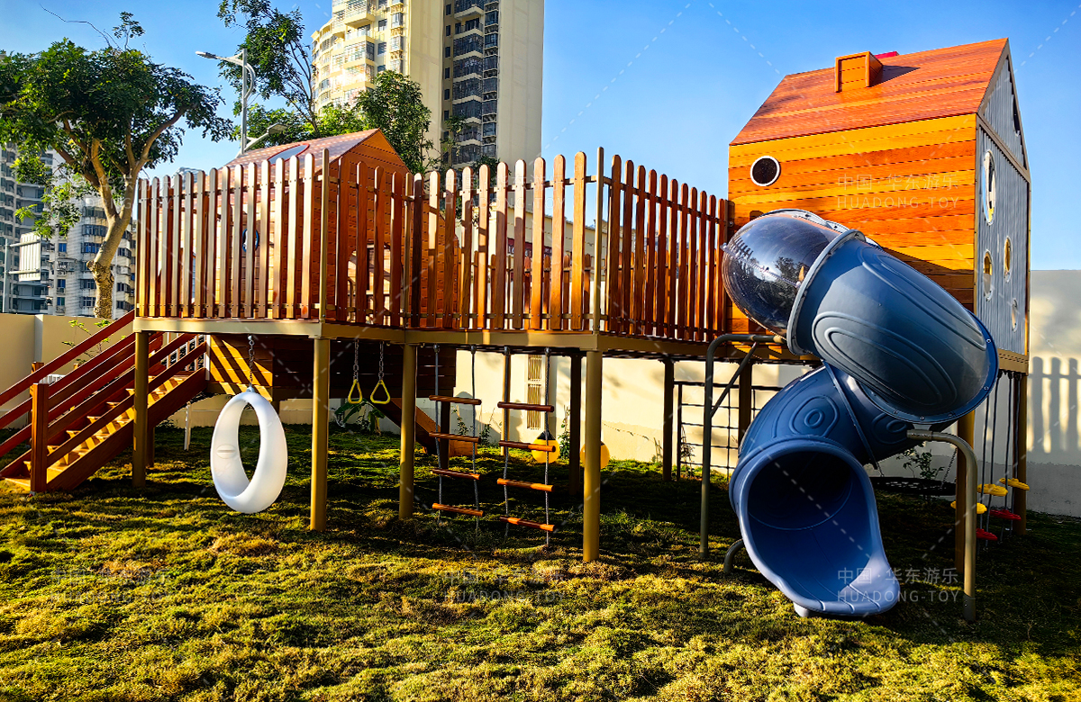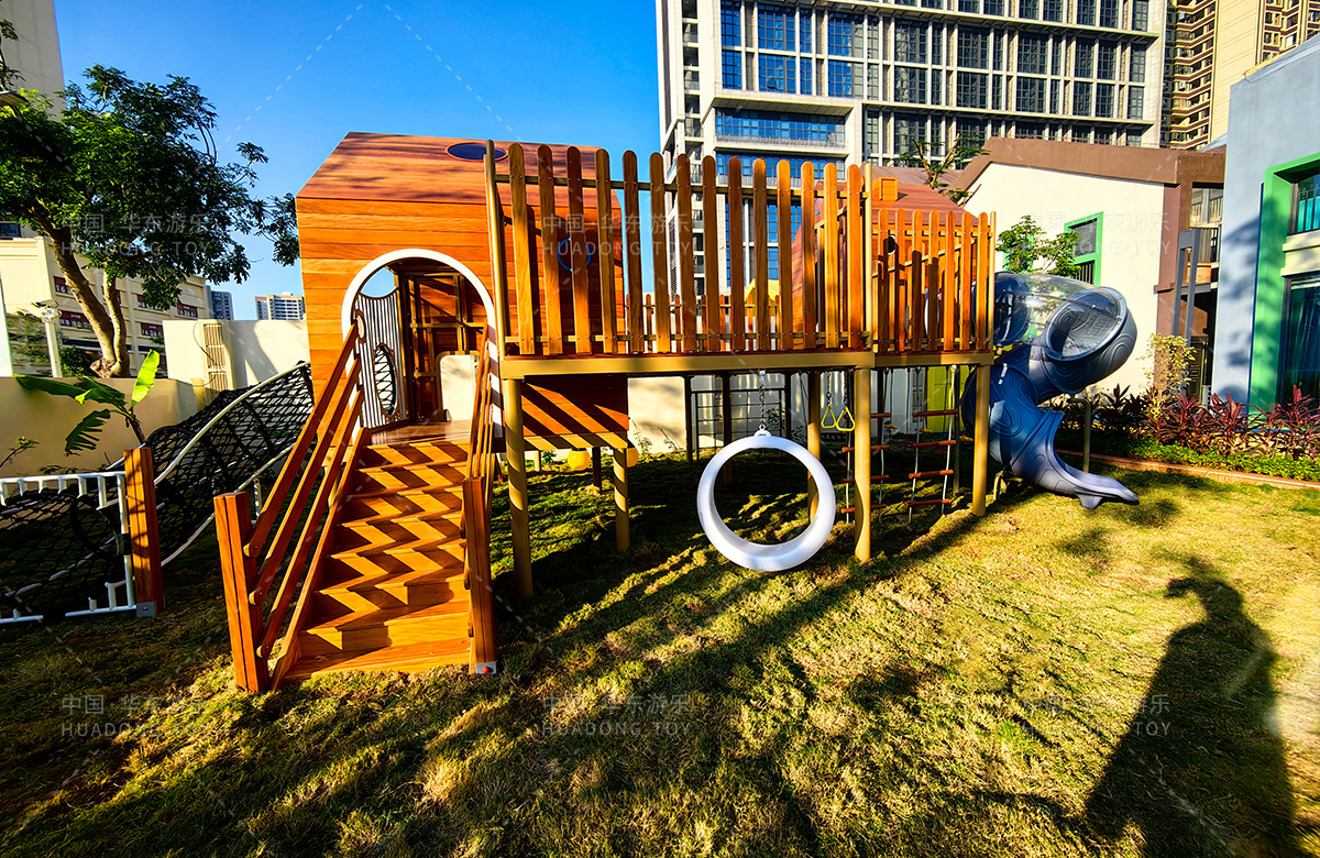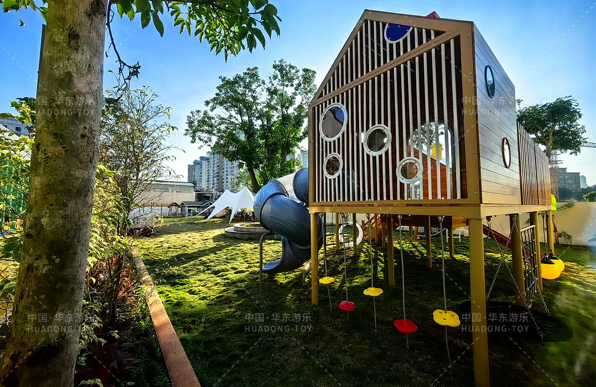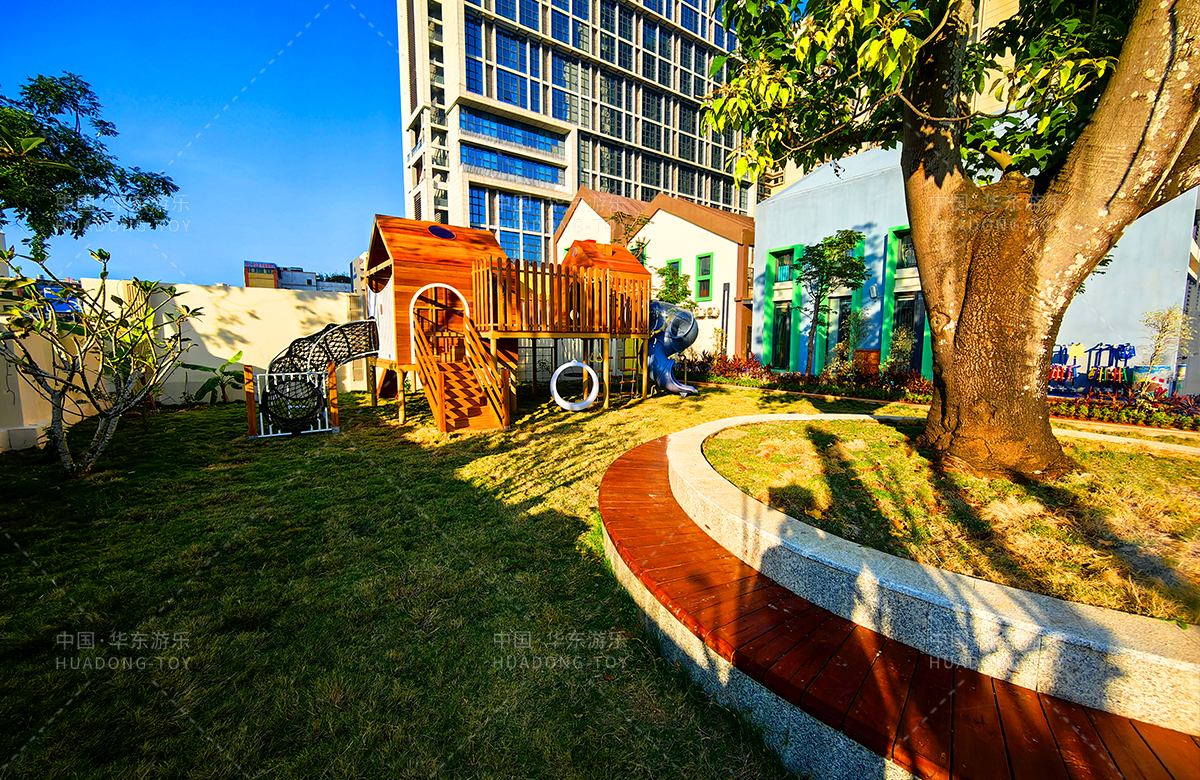 海南省农垦总局机关幼儿园选用的是leyu.乐鱼游乐自主研发和设计的木质系列非标定制的游乐设备,该游乐设备具备了攀爬网、攀爬梯、月亮秋千、旋转滑梯、儿童秋千、平衡绳等功能为一体,该游乐设备的设置不仅仅为孩子们的玩耍提供看保障,更是为老师的教学提供了帮助。