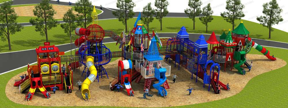 跨国梦想欢乐岛系列滑梯采用多种不同色彩的风格设计搭配,大型丰富的玩乐项目让儿童仿佛置身于世界各国不同的人土风情,增加对不同国家国情认识的兴趣,有利于儿童从小养成学习知识和培养兴趣的好习惯。